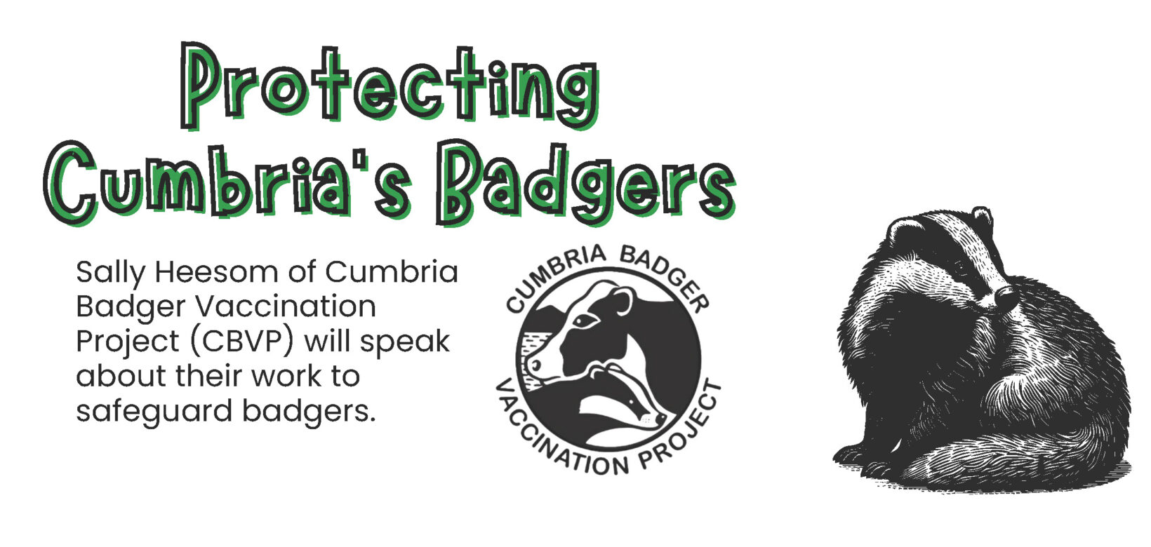 The talk will be by Sally Heesom who leads the Badger Vaccination Project (CBVP) project. More information and booking available via the Penrith Action for Community Transition (PACT) website. More information and booking available via the Penrith Action for Community Transition (PACT) website.